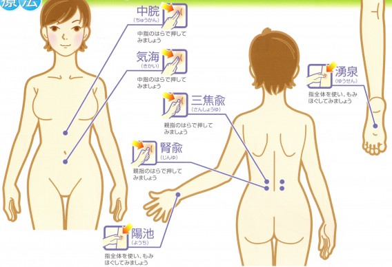 その他にも疲労回復には「中脘」、「気海」、「陽池」